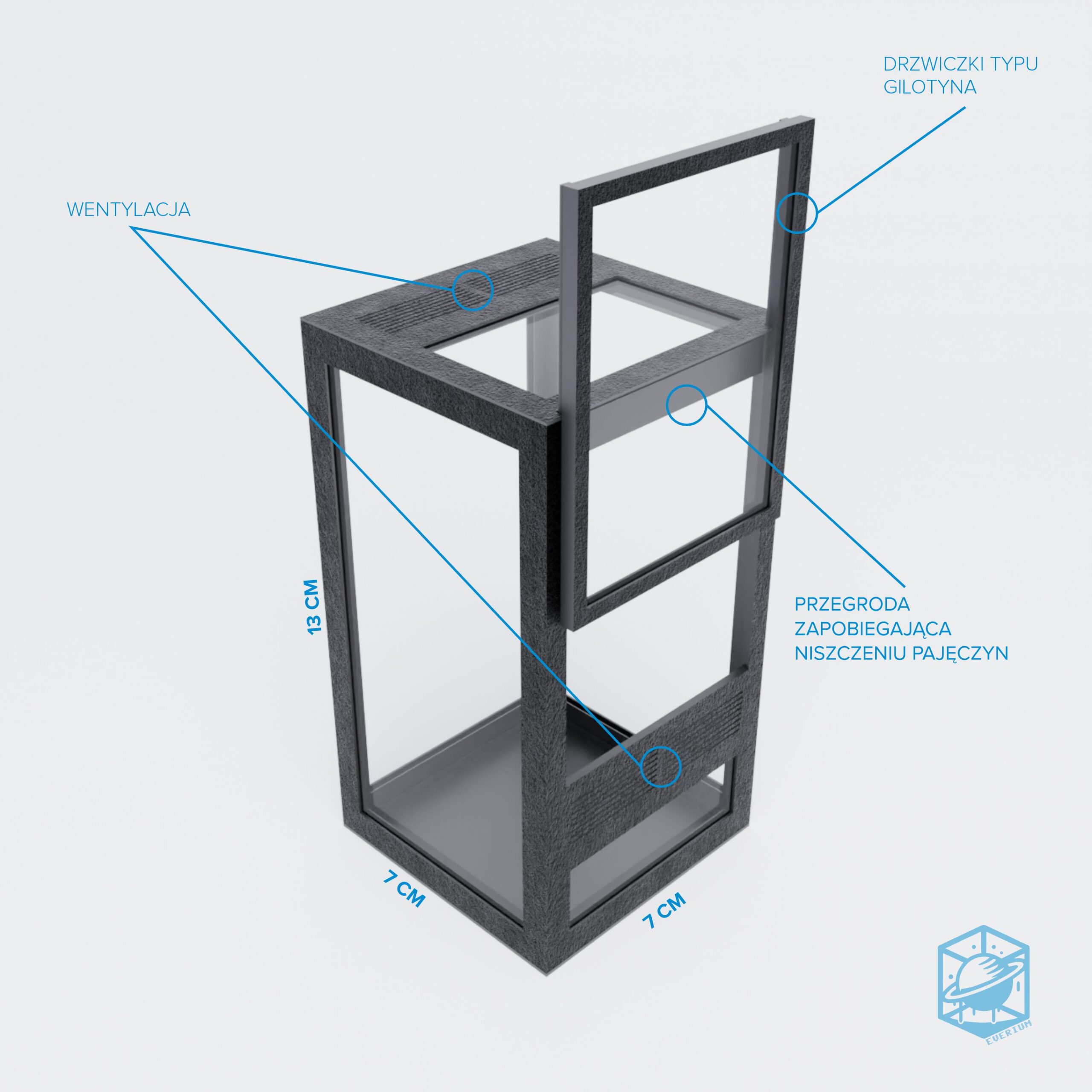 Terrarium “Everium” zostało zaprojektowane z myślą o hodowli owadów i pająków.